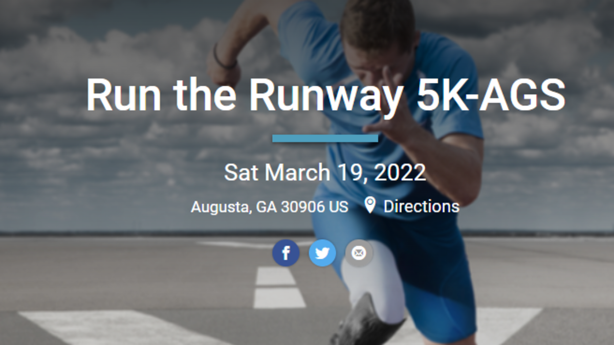 Run the Runway 5K-AGS Sat March 19, 2022 Price: $30.00 Race Fee + $2.74 Sign Up Fee Registration: Registration ends March 16, 2022 at 12:00am EDT Register HERE