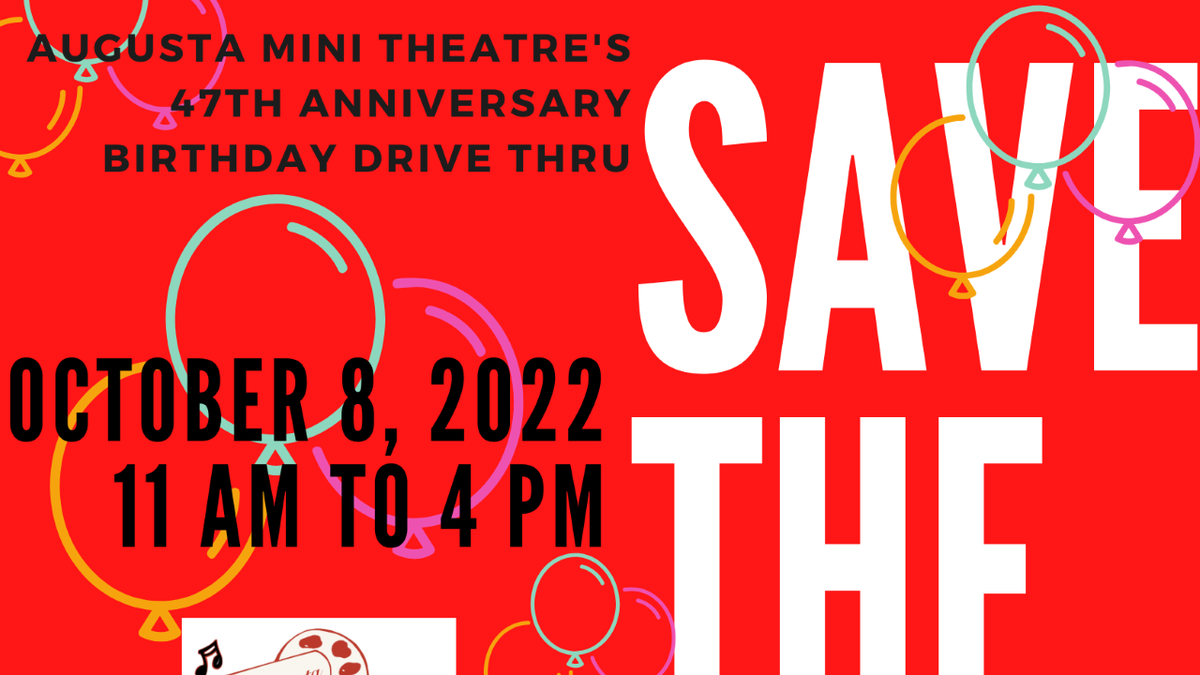 Between 11 a.m. and 4 p.m., on Saturday, October 8, 2022, Augusta Mini Theatre’s staff will accept donations during a Drive Thru-Horn Blowing 47th Birthday Celebration. During this year’s event, we hope to include our Chef’s, Restaurants and Caterers through Gift Cards. The gift cards will be available on a first come basis to those donors who give during the drive thru event. As the Augusta Mini Theatre recovers from the pandemic, supporters are asked to give a symbolic donation of a $47.00 birthday gift or any amount online at www.AugustaMiniTheatre.org, Cash App ($augustaminitheatre), Zelle (tyronejbutler67@yahoo.com) or during the Drive-Thru.