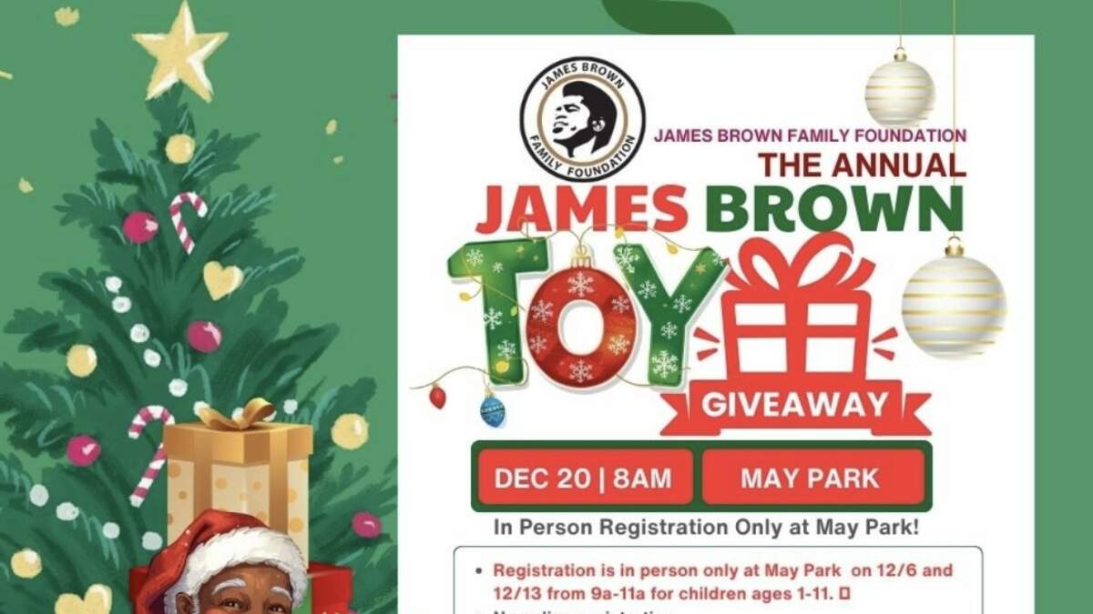 Registration is only in person at May Park on 12/6 and 12/13 from 9a-11a for children 1-11 for The James Brown Toy Giveaway happening 12/20 at May Park stating at 8 AM.